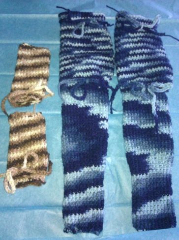 Felç ya da bir başka uzuv deformasyonu olan hayvanlarda açılabilecek yaraları önleyecek ve yürümelerine yardımcı olacak örgü tozluklar